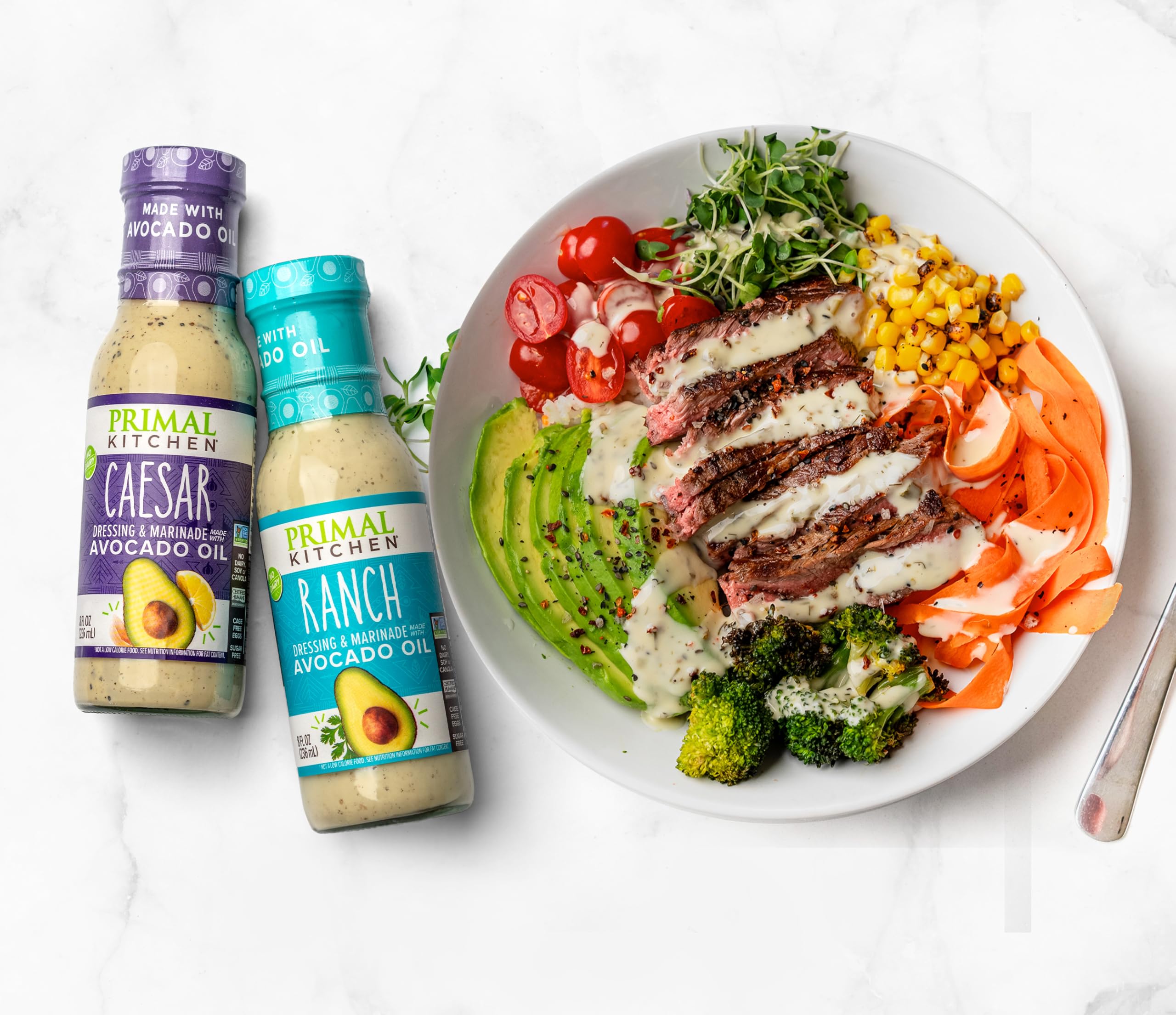 Primal Kitchen Ranch Dressing & Marinade and Caesar Dressing & Marinade, Made with Avocado Oil and Cage-Free Eggs, 8 Fluid Ounces, Variety Pack of 2